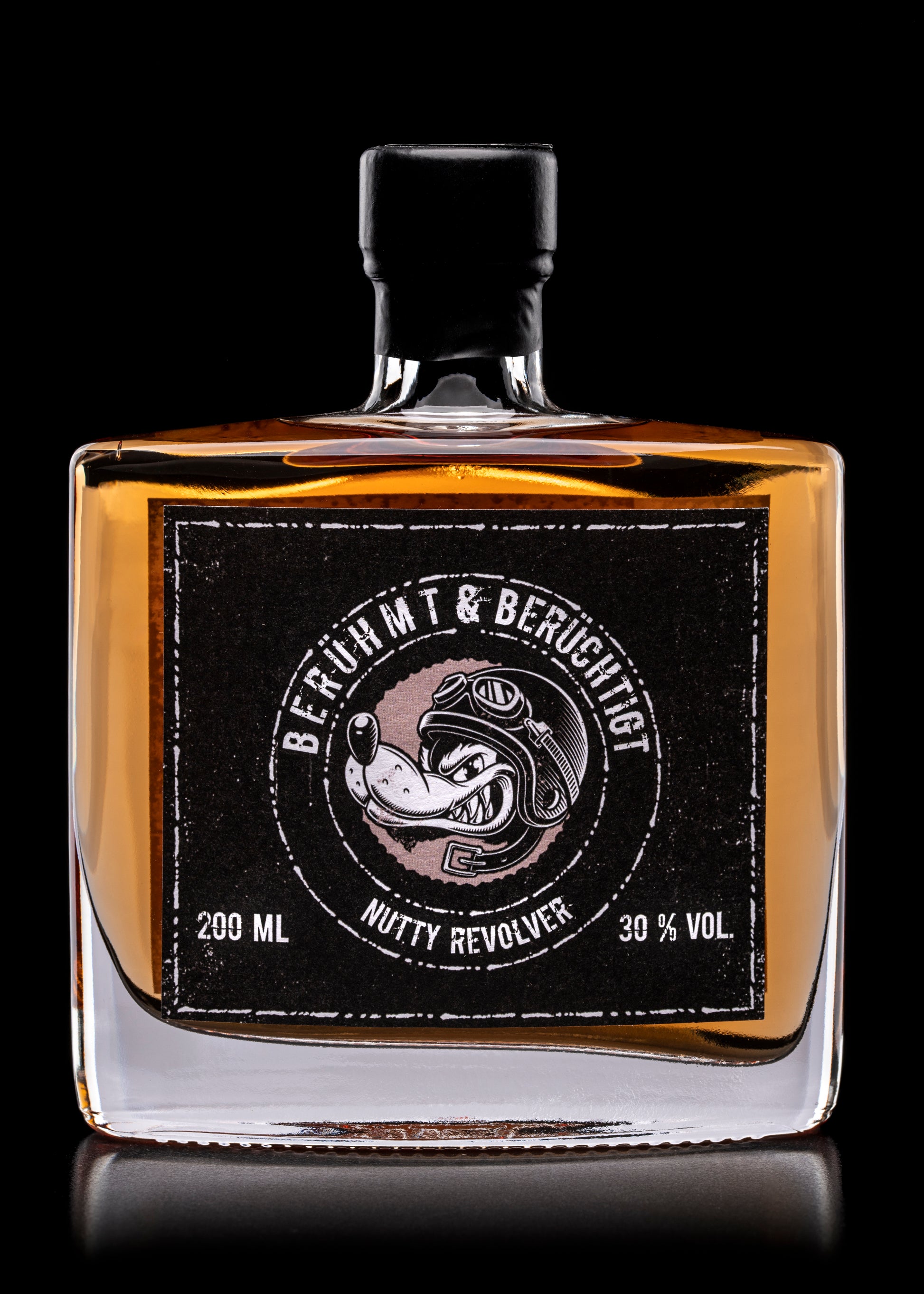 Der Nutty Revolver ist kein Drink – er ist eine Waffe für echte Geschmacksrevoluzzer. Mit 30 % Vol. verbindet er feine Haselnussnoten mit rebellischem Charakter und lässt jeden Sahnelikör alt aussehen. Für die Wilden unter den Genießern, die mehr wollen als den Standard.